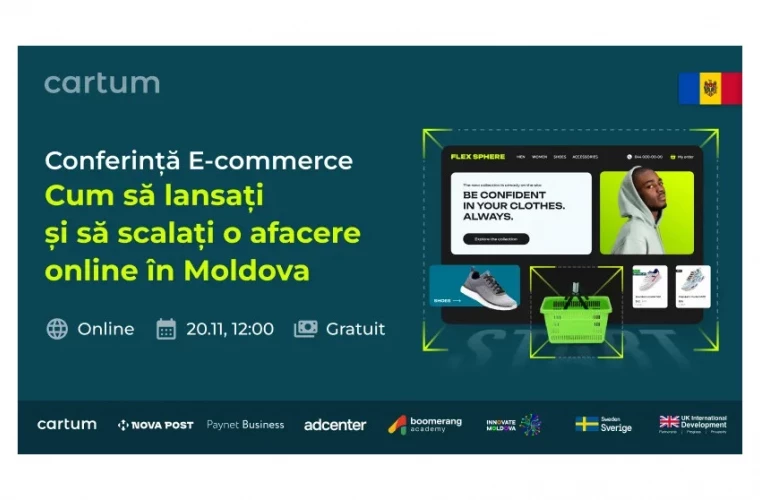 Antreprenorii vor putea dobândi cunoștințe practice privind lansarea și dezvoltarea unei afaceri online în Moldova în cadrul unei conferințe gratuite, care va avea loc pe 20 noiembrie 2025. Evenimentul este organizat de platforma Cartum, cu sprijinul programului Innovate Moldova, finanțat de Suedia și Regatul Unit.