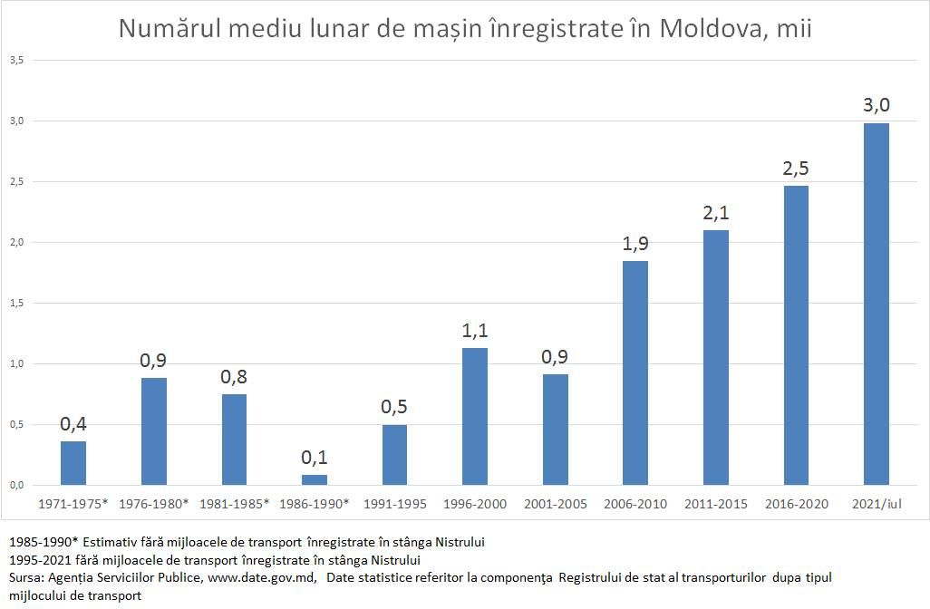"Iar lungimea drumurilor în aceeași perioadă a rămas aproape neschimbata, 6,2 mii km în 1970 și doar 9,4 mii km în prezent.